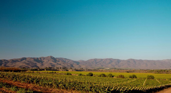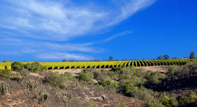 明朗如鏡的天空,映襯著連綿起伏的山丘,偶爾可見仙人掌、山楂樹和其它一些低矮的灌木叢,而在山谷之地,卻分布著成片的葡萄園,綠色的葡萄葉、黃色的土地與藍色的天空交相輝映,這就是阿塔卡馬沙漠(Atacama Desert)南部的風光,著名的利馬里谷(Limari Valley)產(chǎn)區(qū)便坐落于此。