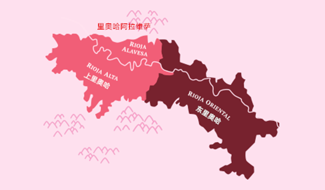 里奧哈位于西班牙北部,它北靠坎塔布里亞山脈(Sierra de Cantabria),南接伊比利亞山系(Sistema Iberico),沿埃布羅河(Ebro River)分布。里奧哈產區可以劃分為三個子產區,分別是上里奧哈(Rioja Alta)、東里奧哈(Rioja Oriental)和里奧哈阿拉維薩(Rioja Alavesa)。
