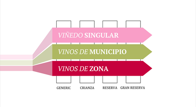 2017年,里奧哈法定產區監管委員會(Rioja Consejo Regulador)在葡萄酒法規上推陳出新,新增了地理標簽制度。該地理標簽制度將葡萄酒分為單一園葡萄酒(Vinedo Singular)、村鎮級葡萄酒(Vinos de Municipio)和大區級葡萄酒(Vinos de Zona)三個等級,使葡萄酒更能突顯風土特征。另外,此次更新也對原本的陳釀級別做了一些修改。原來的里奧哈葡萄酒根據陳釀年限分為新酒(Joven)、陳釀(Crianza)、珍藏(Reserva)與特級珍藏(Gran Reserva),在這次更新中,“Joven”更名為“Generic”(原產地保障)。