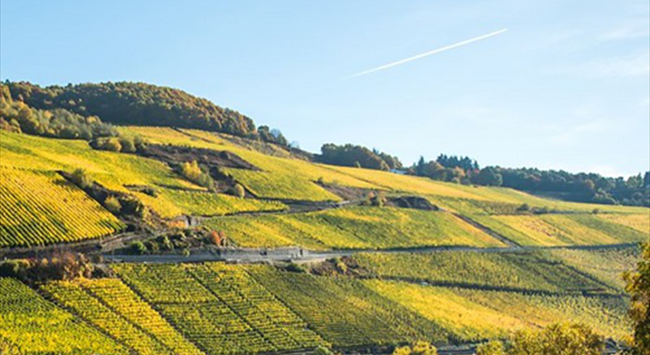 摩澤爾產(chǎn)區(qū)地形獨特,河流流經(jīng)的地區(qū)兩側(cè)多為陡峭的山坡,產(chǎn)區(qū)內(nèi)的葡萄園就分布在這些斜坡之上。其中,朝南的葡萄園由于能夠獲得最大程度的陽光直射,條件最為優(yōu)渥。過高的坡度為機械化帶來了很大的難度,因而這里葡萄的種植與采收絕大部分都是靠人工完成的。