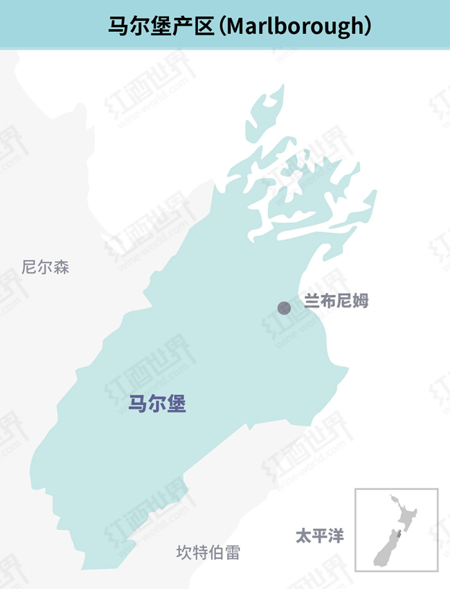 馬爾堡位于新西蘭南島的東北部,葡萄種植面積超過2萬公頃,約占新西蘭葡萄總種植面積的2/3,是新西蘭最大的葡萄酒產(chǎn)區(qū)。