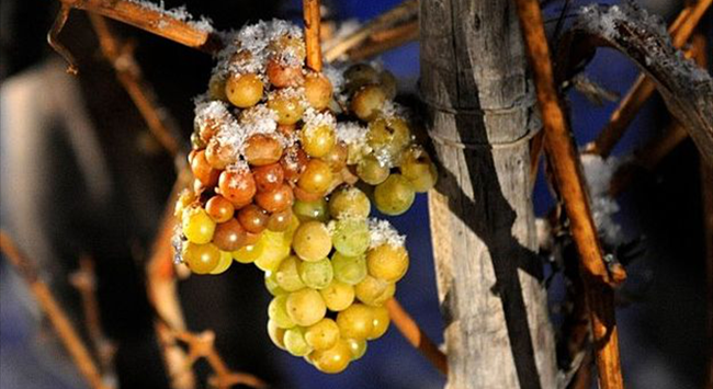 就如許多發明一樣,冰酒的誕生也是一次意外。據說在十八世紀末的德國,葡萄還沒來得及采收,就遭遇了嚴寒天氣,釀酒師們被迫用結冰的葡萄來釀造葡萄酒,結果卻意外得到了香氣純凈馥郁、口感甜蜜誘人的佳釀。采用結冰葡萄釀酒的方法便由此在德國逐漸流傳開來。