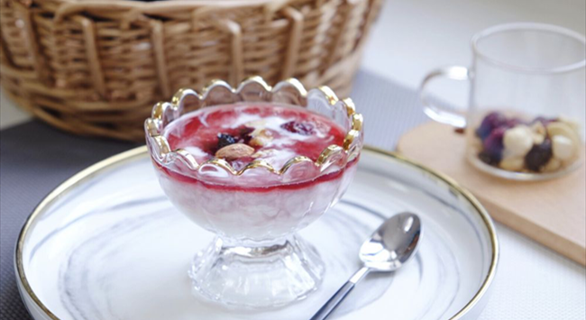 為了令冰酒的口感更為平衡,飲用前,一般需要將其充分冰鎮至6℃-8℃。因其口感甜美,冰酒非常適合與甜品糕點搭配飲用,可以嘗試搭配軟奶酪,如布里干酪和淡味山羊奶酪,或者簡單的香草甜點,如酸奶意式奶凍、酸奶油磅蛋糕和冰淇淋。搭配食物的甜度也有所講究,最好不要高于冰酒。