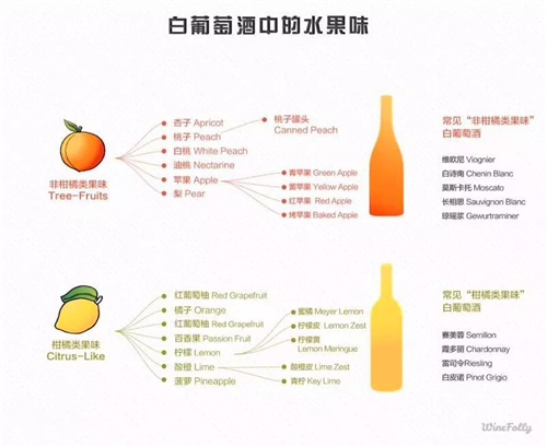 ②白葡萄酒中的果味也有兩類,柑橘類和非柑橘類,了解了這一點(diǎn),也能為我們的配餐提供指南。