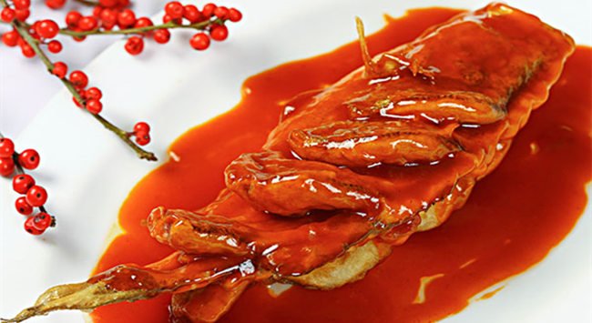 如西湖醋魚(yú),一定要選用酸度相當(dāng)或比菜酸度高一些的酒。黑皮諾將是一個(gè)絕妙的選擇,它屬于中等酒體,且酸度較高。