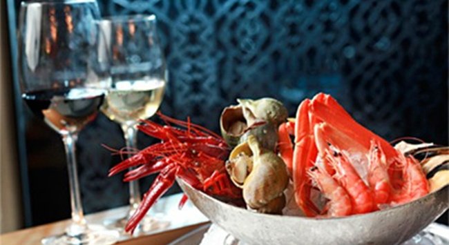 盡管新鮮的大馬哈魚、劍魚或金槍魚由于富含天然油脂,能夠與體量輕盈的紅葡萄酒搭配良好,但紅葡萄酒與某些海鮮相搭配時,比如:多弗爾油鰨魚片,高含量的單寧會嚴重破壞海鮮的口味,葡萄酒自身甚至也會帶上令人討厭的金屬味。