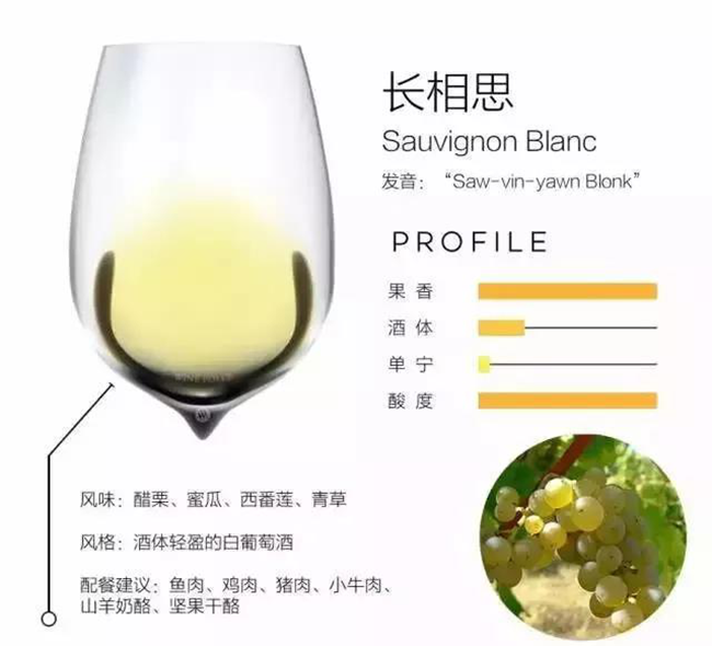 長相思是一款源自法國的、干型、酒體輕盈的白葡萄酒。這種葡萄酒非常清新,草本和青果風(fēng)味明顯。長相思還是赤霞珠葡萄的母系品種之一。