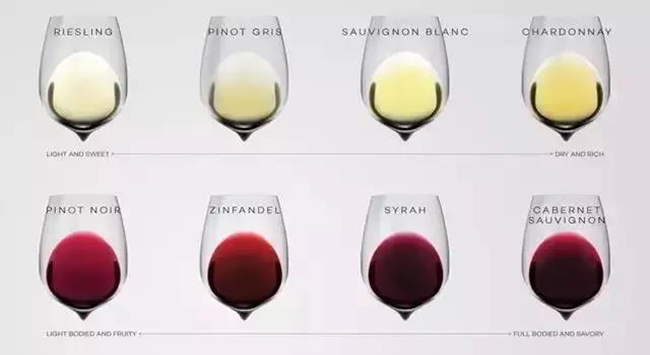 白葡萄酒:從酒體輕盈且甜的到酒體飽滿且干型的,我們分為四個(gè)類型;