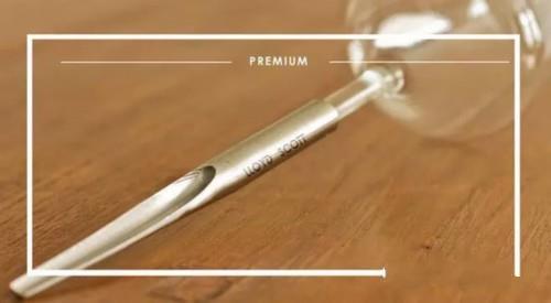這款紅酒杯的上端設(shè)計和大家日常使用的紅酒杯相同,只不過在下端進行了創(chuàng)新設(shè)計。在酒杯的底部,并不是傳統(tǒng)底座式設(shè)計,而是采用了類似于針尖的形狀。