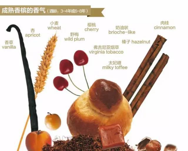 香檳酒中常會展現(xiàn)出廣泛的香氣。根據(jù)香檳風(fēng)格的不同,香氣的發(fā)展也是一個連續(xù)不斷的過程。這種變化貫穿著釀酒過程的每一個階段,包括壓榨、調(diào)配、酒腳接觸成熟、除渣、打塞、瓶中成熟以及待售前的窖藏。