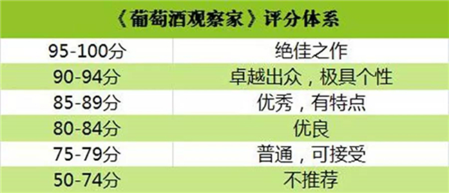 從上列表格中可以看出,這些評分體系的區間也不太相同,比如 82 分在《葡萄酒愛好者》評分體系中屬于可接受的品質,而在《葡萄酒觀察家》評分體系中卻代表優良品質,再次說明不同評分體系給予的分數不具有對比性。