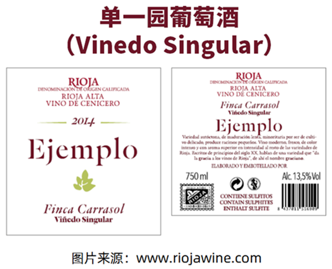 在此之前,里奧哈葡萄酒僅根據(jù)陳釀年限分為四大類:新酒(Joven)、陳釀(Crianza)、珍藏(Reserva)與特級珍藏(Gran Reserva),其中新酒在新規(guī)中被稱為原產(chǎn)地保障(Generic)。如今,在陳釀年限的基礎(chǔ)上,里奧哈新增了地理標(biāo)簽制度,包括單一園葡萄酒(Vinedo Singular)、村鎮(zhèn)級葡萄酒(Vinos de Municipio)和大區(qū)級葡萄酒(Vinos de Zona)三個等級,使葡萄酒更能突顯風(fēng)土特征。以下是紅酒世界根據(jù)里奧哈產(chǎn)區(qū)官網(wǎng)(www.rojawine.com)的信息整理的里奧哈葡萄酒標(biāo)簽的圖文介紹。