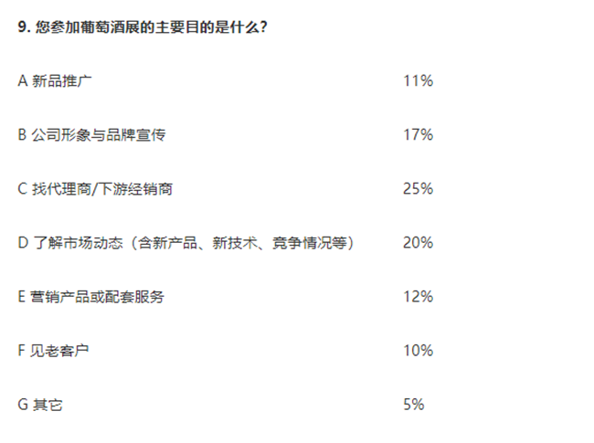 9. 25%企業(yè)均參加葡萄酒展的主要目為尋找代理商/下游經銷商