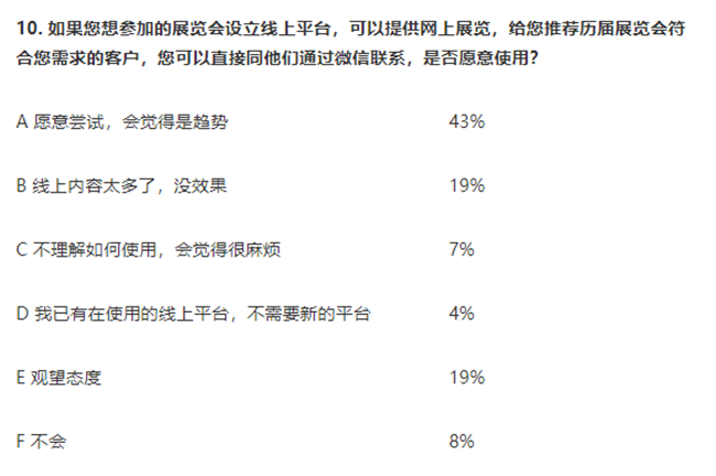 10. 43%的企業(yè)愿意嘗試網上展會。