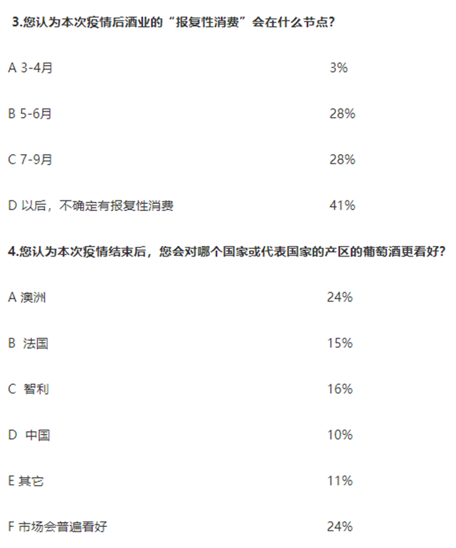 4. 48%的企業(yè)認為疫情結束后,葡萄酒市場會更被普遍看好。