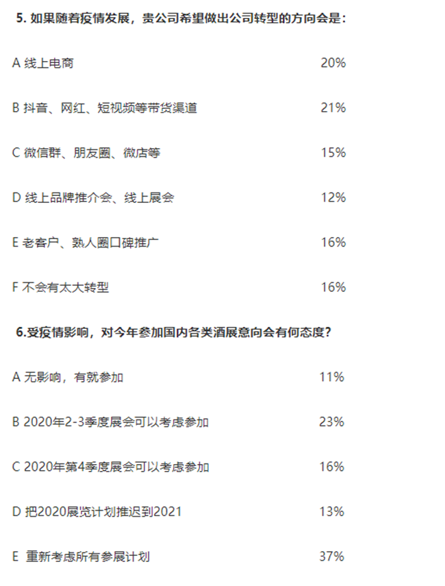 5. 68%的企業(yè)對線上形式的轉型方向感興趣,包括:線上電商、抖音、網紅、短視頻微、信群、朋友圈、微店、線上品牌推介會、線上展會等渠道。