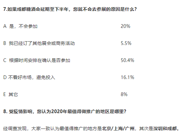 7. 50.4%的企業(yè)在觀望成都春季糖酒會的延期時間以便確認是否參加。