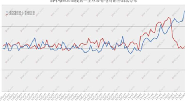 在Nov 2019 to Jan 2020——Nov 2018 to Jan 2019階段,Baidu搜索量平穩(wěn)增長(zhǎng),作為傳統(tǒng)節(jié)日的春節(jié)后因假期及外部環(huán)境原因開(kāi)始下滑。而同一時(shí)期內(nèi),9kacha搜索量增長(zhǎng)明顯,9kacha用戶(hù)群體中,約1/3為葡萄酒行業(yè)用戶(hù),受春節(jié)、提前進(jìn)入假期及外部環(huán)境原因,搜索量開(kāi)始下滑,整個(gè)葡萄酒行業(yè)受假期及外部環(huán)境原因影響更加明顯。
