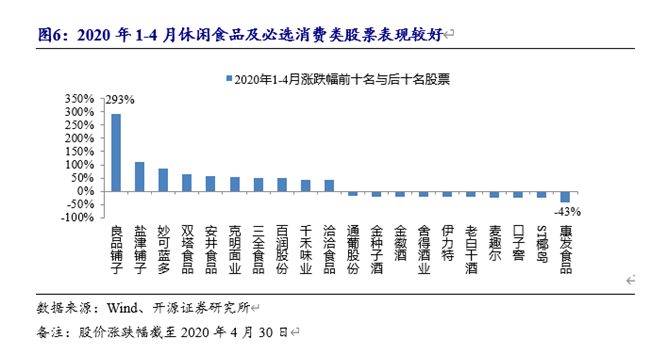疫情期間消費場景發(fā)生變化,封城、封路、居家隔離使得消費者更多集中在家庭消費,具有居家囤貨需求的必選消費以及具備“宅文化”屬性的休閑食品表現(xiàn)較好。其中,葡萄酒品類中的通葡股份有著較突出表現(xiàn)。