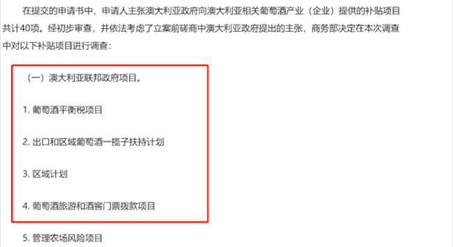 選取出口數(shù)量占前4位的公司作為反補(bǔ)貼調(diào)查對象,分別為富豪葡萄酒產(chǎn)業(yè)酒商有限公司、卡塞拉酒業(yè)私人有限公司、澳大利亞天鵝釀酒有限公司、保樂力加釀酒師有限公司。