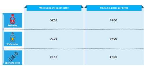 該報(bào)告的研究主體是“Top Wines”,也就是那些在餐飲渠道中,批發(fā)價(jià)格高于每瓶20歐元,零售價(jià)格高于每瓶70歐元的紅葡萄酒;批發(fā)價(jià)格高于每瓶10歐元,零售價(jià)格高于每瓶40歐元的白葡萄酒和批發(fā)價(jià)高于每瓶15歐元,零售價(jià)高于每瓶50歐元的起泡酒。