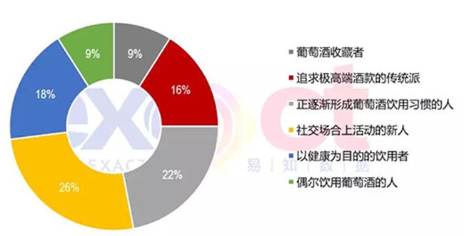 葡萄酒消費者根據(jù)消費偏好及飲用習慣可分為六類人群,包括葡萄酒收藏者、追求極高端酒款的傳統(tǒng)派、正逐漸行程葡萄酒飲用習慣的人等。