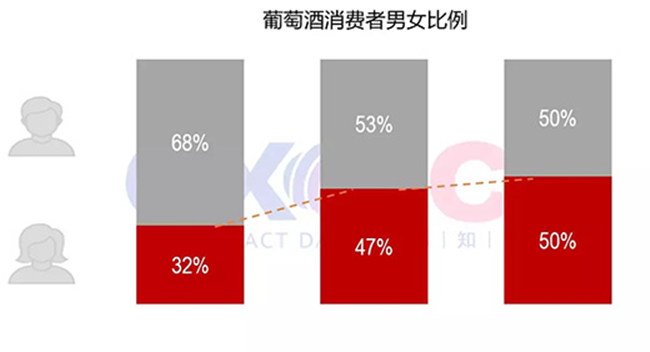 近年來,女性在葡萄酒消費者中占比逐年擴大。有相關(guān)數(shù)據(jù)統(tǒng)計,女性消費人數(shù)正以每年22%的速度增長。跟據(jù)2017年香港貿(mào)發(fā)局對內(nèi)地葡萄酒消費者做的抽樣調(diào)查顯示,男性消費者與女性消費者占比相當,各占50%。