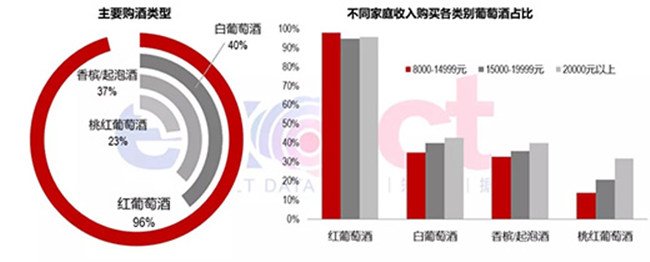 此外,調(diào)查報告還顯示出高收入家庭、高學歷者、企業(yè)中層管理人員更愿意消費葡萄酒的特征。