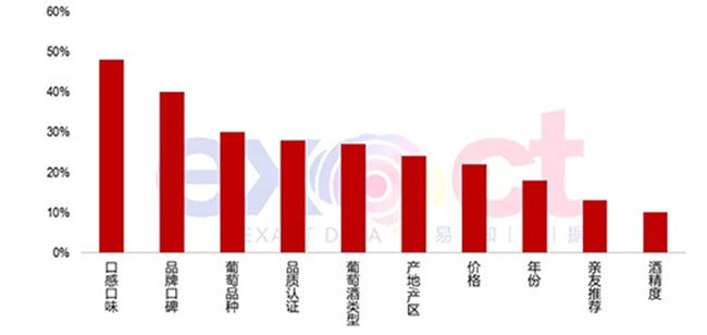 數(shù)據(jù)顯示,消費更愿意跟隨內(nèi)心,為個人喜好買單,口感口味(48%)超過品牌口碑(40%)和價格(22%)成為排名第一的影響購買因素,可見消費者在選購葡萄酒時趨于理性。