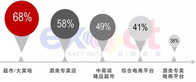 近年線上零售發(fā)展迅猛,雖然從數(shù)據(jù)來看,超市/大賣場、酒類專賣店、精品超市三種傳統(tǒng)零售渠道仍占大比重,但仍然有41%和38%的消費者選擇線上平臺。且隨著千禧一代年輕消費者崛起,線上消費的意愿會更強烈。
