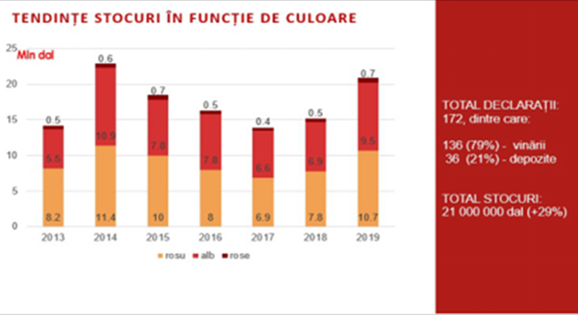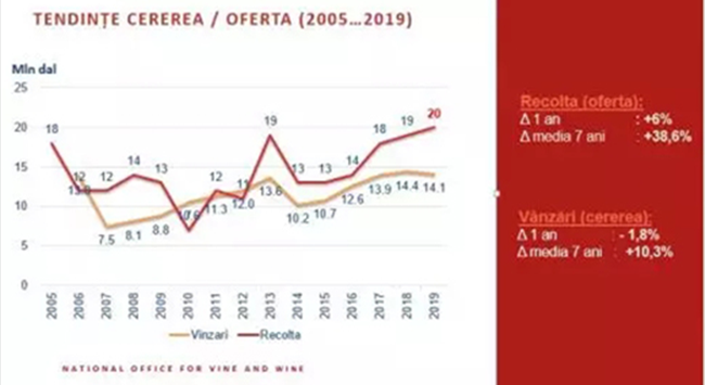 在2018-2019葡萄酒年,基于過去兩年創紀錄的大收成,葡萄酒供需比基本上達到了自2013年實施禁運后的數值。過去7年的平均數據顯示,鑒于摩爾多瓦共和國85%的葡萄酒銷往國外,產自摩爾多瓦的葡萄酒是出口市場所能消化的4倍。