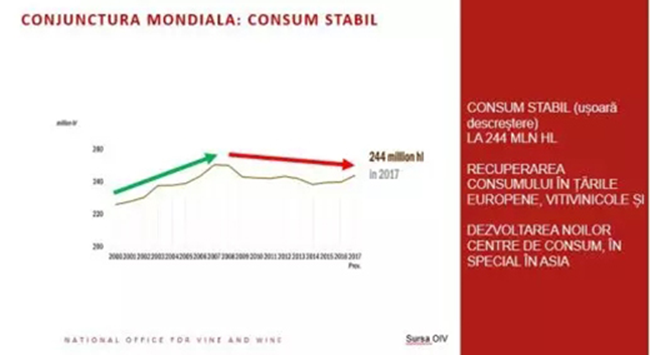 在過去14年中,全球盛產葡萄酒,且十年來葡萄酒消耗量陷入停滯,導致葡萄酒供大于求。摩爾多瓦共和國更是連續兩次取得創紀錄的豐收,并設法保持主要出口指標相對穩定,出口量小跌但影響甚微。