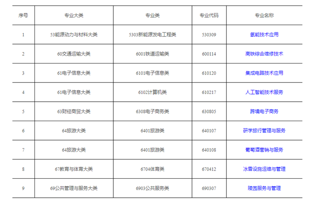 根據《普通高等學校高等職業教育(專科)專業設置管理辦法》,在相關學校和行業提交增補專業建議的基礎上,教育部組織研究確定了2019年度增補專業共9個,現予公布,自2020年起執行。