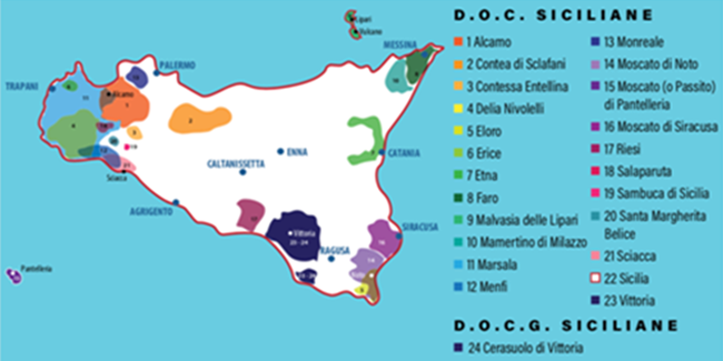 西西里地處歐亞中東的十字路口,是地中海最大的島嶼。大自然的恩賜使這里十分適宜葡萄生長。島嶼整體呈典型的地中海氣候,但又因島內(nèi)多樣性的地形,造就了各具特色的區(qū)域風(fēng)格:內(nèi)陸干燥而熾熱,海岸暖風(fēng)習(xí)習(xí),埃特納火山以及山丘地區(qū)濕潤而涼爽。因此,西西里成為了意大利最大的葡萄種植區(qū),出產(chǎn)各式性格鮮明的葡萄酒。西西里因其戰(zhàn)略性的地理位置,在歷史上曾是兵家必爭之地。也成就了其悠久的釀酒歷史,最早可追溯至公元前8世紀(jì)。如今的西西里是意大利第一個追求有機(jī)種植的地區(qū),尊重自然和可持續(xù)性發(fā)展。越來越多的釀酒師致力于打造新鮮而直接的美酒,選擇更為現(xiàn)代的風(fēng)格,適應(yīng)國際菜肴的搭配。近年來,西西里葡萄酒生產(chǎn)取得了突飛猛進(jìn)的進(jìn)步:2018年瓶裝產(chǎn)量約為8000萬瓶,較之2017年的3000萬瓶增長了167%。而2019全年的瓶裝產(chǎn)量預(yù)計會達(dá)到1億瓶。