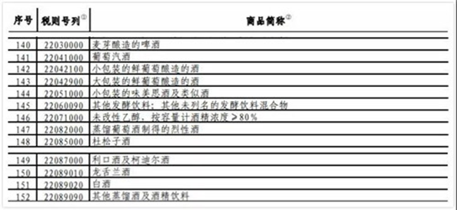 葡萄酒在內的酒類商品作為美國重要的農產品,就包含在《國務院關稅稅則委員會關于對原產于美國的部分進口商品(第 3 批)加征關稅的公告》(稅委會公告〔2019〕4 號)附件 2 第 1 部分商品內,因此可以免予在此前基礎上加征的 10% 關稅。具體包含內容如下: