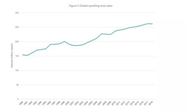 很長時間以來,全球氣泡葡萄酒銷量都呈現上漲趨勢