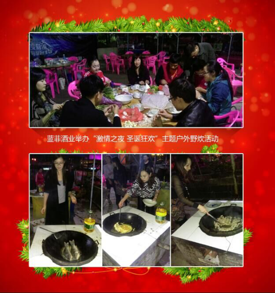 12月25日,適逢圣誕節(jié)來(lái)臨之際,公司組織藍(lán)菲酒業(yè)全體員工開展“激情之夜 圣誕狂歡”為主題的農(nóng)家樂(lè)戶外野炊活動(dòng),讓全體員工在公司共度一個(gè)難忘的圣誕節(jié)。