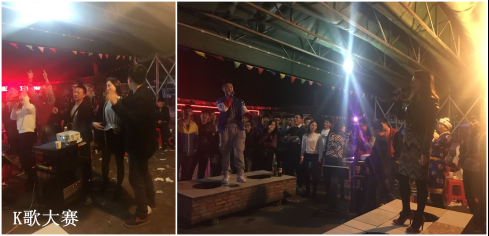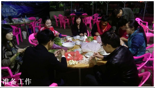 25號(hào)當(dāng)天,負(fù)責(zé)采購(gòu)的同事根據(jù)大家寫好的菜單,提前采購(gòu)好所需要的雞、鴨、魚、肉、蔬菜等各色原料,以及油鹽醬醋等各種調(diào)味品,開始做好活動(dòng)前的各項(xiàng)準(zhǔn)備工作。當(dāng)天下午5點(diǎn),大家在公司領(lǐng)導(dǎo)莊總、劉總、曾總的帶領(lǐng)下,陸續(xù)到達(dá)活動(dòng)現(xiàn)場(chǎng)——位于南城水濂山腳下順風(fēng)山莊內(nèi)的蒙之味烤全羊原生態(tài)KTV燒烤廣場(chǎng)。