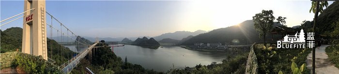 緊接著藍(lán)菲團(tuán)隊乘坐山體垂直觀光電梯,平布青云,扶遙直上,到達(dá)觀光電梯空中平臺,一起俯瞰1680畝天鵝湖畔。我們相繼踏上擁有廣東省內(nèi)最長、世界最長喀斯特地貌湖景玻璃橋美稱的天宮玻璃橋,輕松就能將整個湖光山色盡收眼眸,翠綠蔥郁的北江峰林重巒疊嶂,天鵝湖依山傍水波光瀲滟,一覽無遺的自然美景凝聚著和諧氛圍,眼前開豁的視野放松了我們的心情。