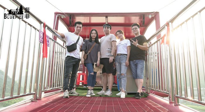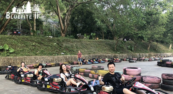 當(dāng)然啦,除了飛龍蹦極,這里還有很多極限活動等著我們來打卡,寶晶宮跑跑卡丁車圓了我們的賽車夢,讓我們親身體驗速度與激情,過一把賽車手的癮;天山滑道帶領(lǐng)我們在森林與喀斯特地貌之中急速穿行,真實還原過山車叢林穿越,快速、刺激而又唯美;坐上天鵝湖滑索,飛越千畝湖面,仿佛乘風(fēng)前行,將山青水秀、碧波蕩漾的美景盡收眼底......在一輪又一輪驚險刺激的游戲項目中,藍(lán)菲伙伴們的工作壓力都得到了盡情的釋放,在美景中返璞歸真,共同沉浸在這質(zhì)樸而浪漫的世外桃源。